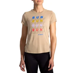 Brooks | Women’s Distance Graphic Short Sleeve Tee – Heather Oatmeal