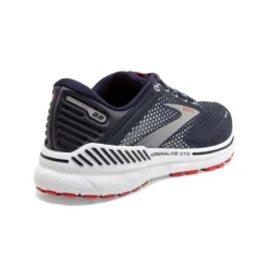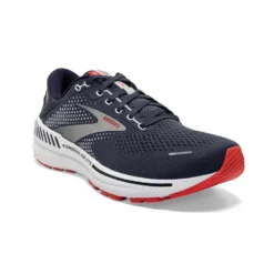 Advice for Road Runners:Â The new Adrenaline GTS 22 2E from Brooks in Peacoat/India Ink/Grenadine offers a wider fit and support through the GuideRails Holistic Support System. This system effectively shifts the focus beyond the feet and onto the knees and is designed to keep you moving comfortably by minimising excess movement. You can forget about distractions and concentrate on improving your run! A new DNA LOFT midsole provides even softer cushioning than before without losing responsiveness and durability. Transition from heel to toe-off is smoothed by the combination of the softer one-piece midsole and a Segmented Crash Pad.