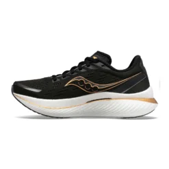 Advice for Road Runners: The Saucony Women’s Endorphin Speed 3 Running Shoes in the Black/Goldstruck colourway offers many of the fast-feeling benefits of the Endorphin Pro 3, but in a shoe designed with a slightly wider range of use in mind.